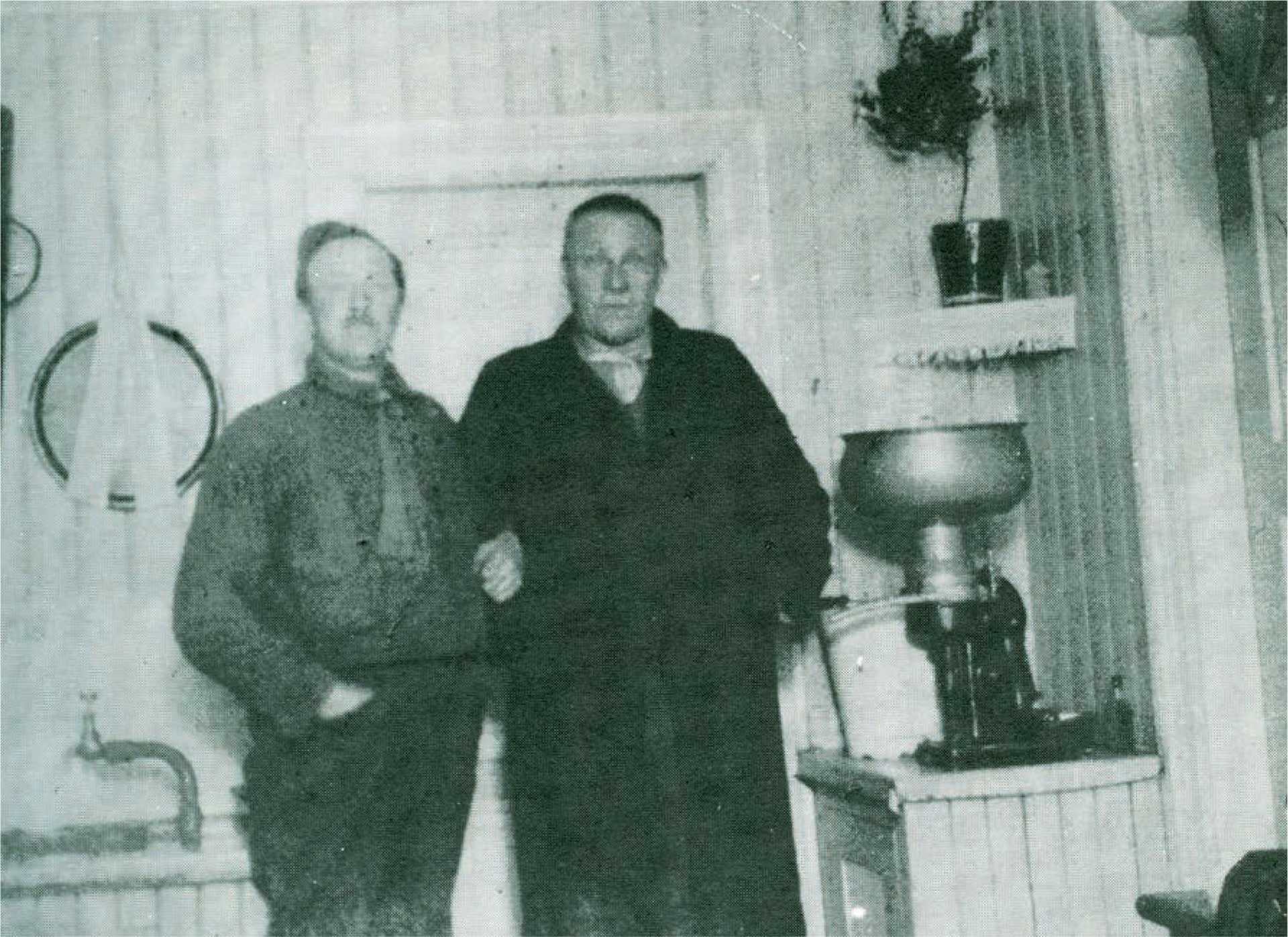 En som tok i mot Smålandsfanten var Rudolf Myrvold. Her er han foreviget sammen med Smålandsfanten til høyre. Bakgrunnen forteller mye om interiøret i mange hjem i 1920-30 åra.