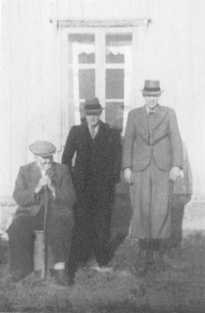 Tre generasjoner. Theodor J. Moen 96 år, sønnen Rasmus 53 år, sønnesønnen Jens 18 år.